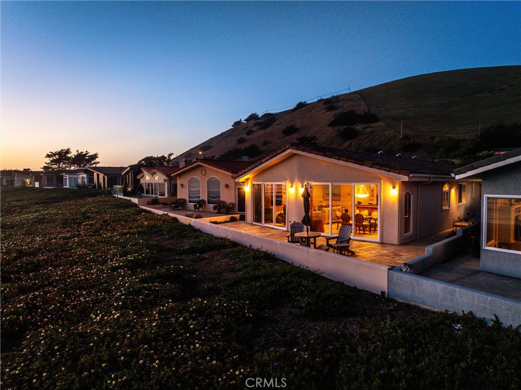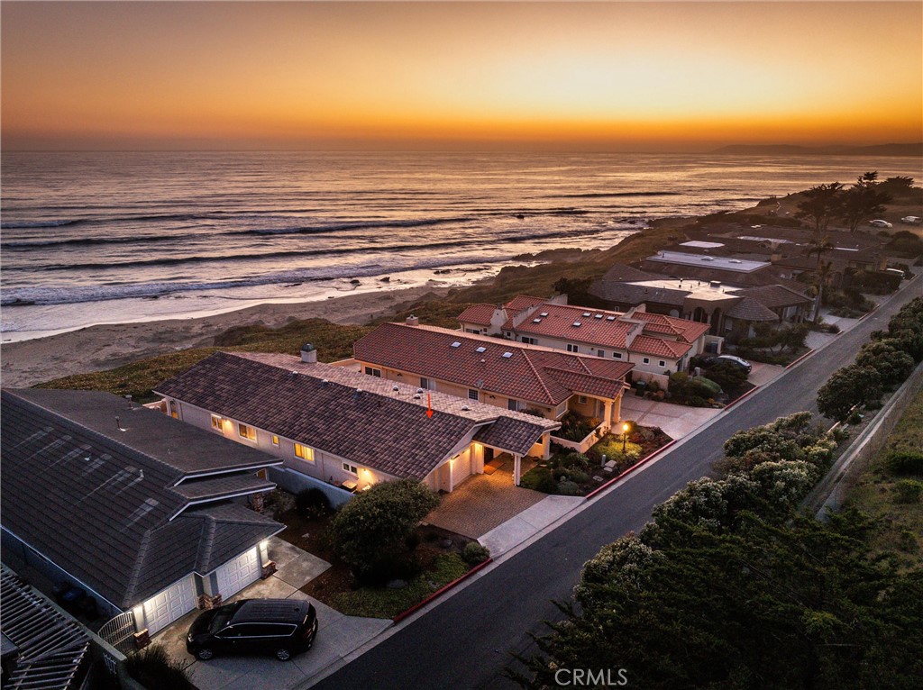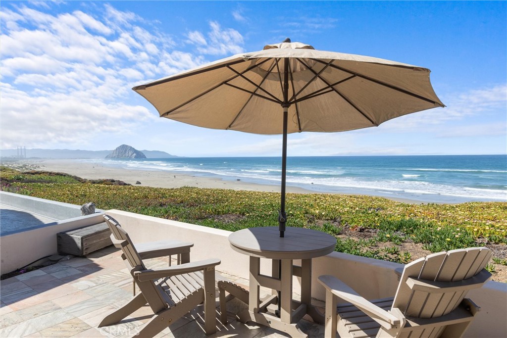 Don't miss this rare opportunity to own an expertly designed, single-level beachfront home in the highly sought-after North Point neighborhood of Morro Bay. This 3-bedroom, 3-bathroom residence offers approximately 2,000 square feet of thoughtfully planned living space, where every detail is tailored for comfort, style, and effortless coastal living. Upgraded front windows and oversized sliding glass doors frame panoramic, unobstructed views of the beach, the iconic Morro Rock, and spectacular sunsets--bringing the natural beauty of Morro Bay right into your home. The gourmet kitchen is a chef's dream, featuring rich maple cabinetry, granite countertops and backsplash, a Sub-Zero refrigerator, Dacor double oven, Windcrest gas cooktop, Bosch dishwasher, a convenient breakfast bar, and a secondary prep sink for added functionality and ease during meal preparation or entertaining. The open living area includes extensive built-in maple shelving flanking a cozy fireplace, with stunning ocean views and electric blinds that allow you to adjust natural light with the touch of a button. The spacious primary suite offers private access to a side yard and an outdoor "surfer" shower, along with dual walk-in closets and a luxurious bathroom with granite dual-sink vanity, a walk-in shower, jetted soaking tub, and bidet. The second bedroom features its own ensuite bath, perfect for guest privacy, while the third bedroom is conveniently located near the third bath in the hallway. Durable 12x12 tile flooring runs throughout the main living areas--ideal for a beach lifestyle--while all bedrooms feature plush carpeting for added warmth and comfort. Solar light tubes enhance the home's brightness, and the generous laundry room includes abundant cabinetry and folding space. Step outside to a tiled front deck just steps from the sand--perfect for beachcombing, surfing, or simply enjoying the peaceful rhythm of the waves. With a durable stucco exterior and tile roof designed to withstand the elements, this expertly designed home offers a rare chance to own true oceanfront property in Morro Bay's North Point neighborhood--where timeless elegance meets the unmatched beauty of coastal living.
