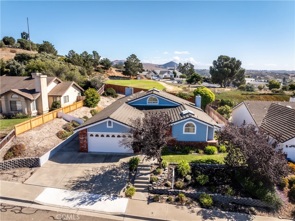 Welcome to this spacious single-level 3-bedroom, 2-bathroom home in coastal community of Arroyo Grande, set on a generous 9,994 sqft lot. With 2,600 sqft of living space, including a bright sunroom, this home offers plenty of room for comfortable living. The formal dining area flows seamlessly into the living room, complete with a cozy fireplace. The kitchen features a tiled bar perfect for casual snacks and is conveniently located next to the family room, which boasts another fireplace for added warmth. The primary bedroom is a private retreat, tucked behind dual doors and featuring a large sitting area, walk-in closet, and an ensuite bathroom with a separate tub, shower, and privacy toilet. High vaulted ceilings with exposed wood beams and skylights flood the home with natural light. Step outside to the expansive backyard, ideal for enjoying peaceful fall afternoons on the Central Coast. This home is perfect for those seeking comfort, space, and tranquility!